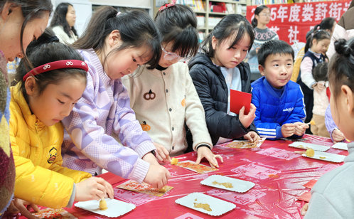 隨著“年俗集市暢玩”環節正式啟動,現場氣氛愈加熱烈。集市精心設置三大體驗區,供親子家庭自由游覽、集章打卡。手作區內,“拓印迎福”攤位前,孩子們親手印制馬年主題紅包,吉祥圖案承載著真摯祝愿;“巧手剪紙”攤位上,紅紙在折疊與剪裁間變幻出精美紋樣,展現傳統技藝的精妙DIY馬年冰箱貼制作攤位旁,孩子們用繽紛的色彩創作出獨一無二的裝飾,定格新春記憶。傳統美食區里,晶瑩剔透的冰糖葫蘆備受歡迎,大家邊品嘗邊交流,甜蜜的滋味在歡聲笑語中蔓延。游戲區的“套馬桿”投壺挑戰吸引了不少孩子踴躍參與,每當命中目標,現場便響起陣陣歡呼。特別設置的“年貨大街”更是成為鄰里分享的平臺,居民們互相交換傳統點心和自制零食,溫情在傳遞中悄然升溫。