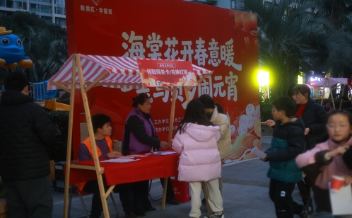 春意繾綣處,海棠綻新顏。蘇州工業園區金雞湖街道國際水岸社區組織開展了一場集傳統民俗、趣味互動與便民服務于一體的元宵游園會,活動以集章闖關串聯文化脈絡、非遺體驗喚醒歷史記憶、暖心服務傳遞鄰里溫情,吸引了數百名居民共赴春日之約。