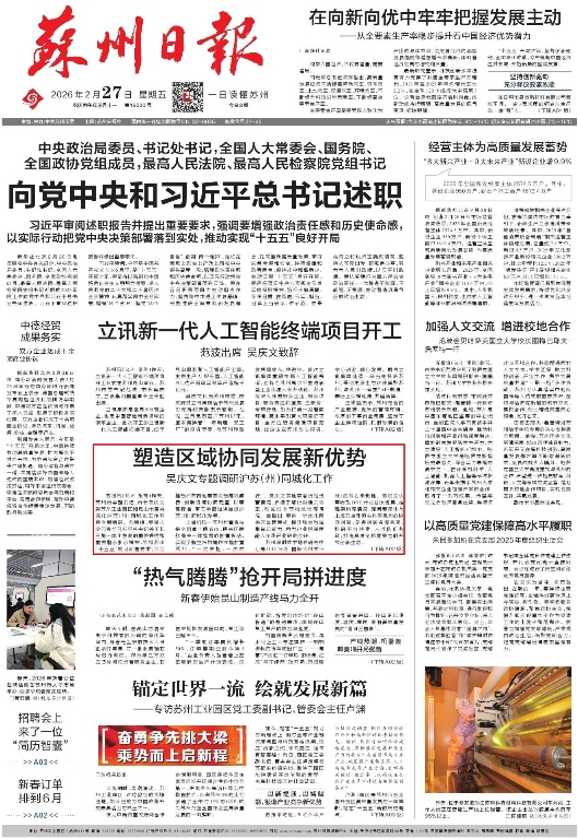 《蘇州日報》2026年02月27日A01版
