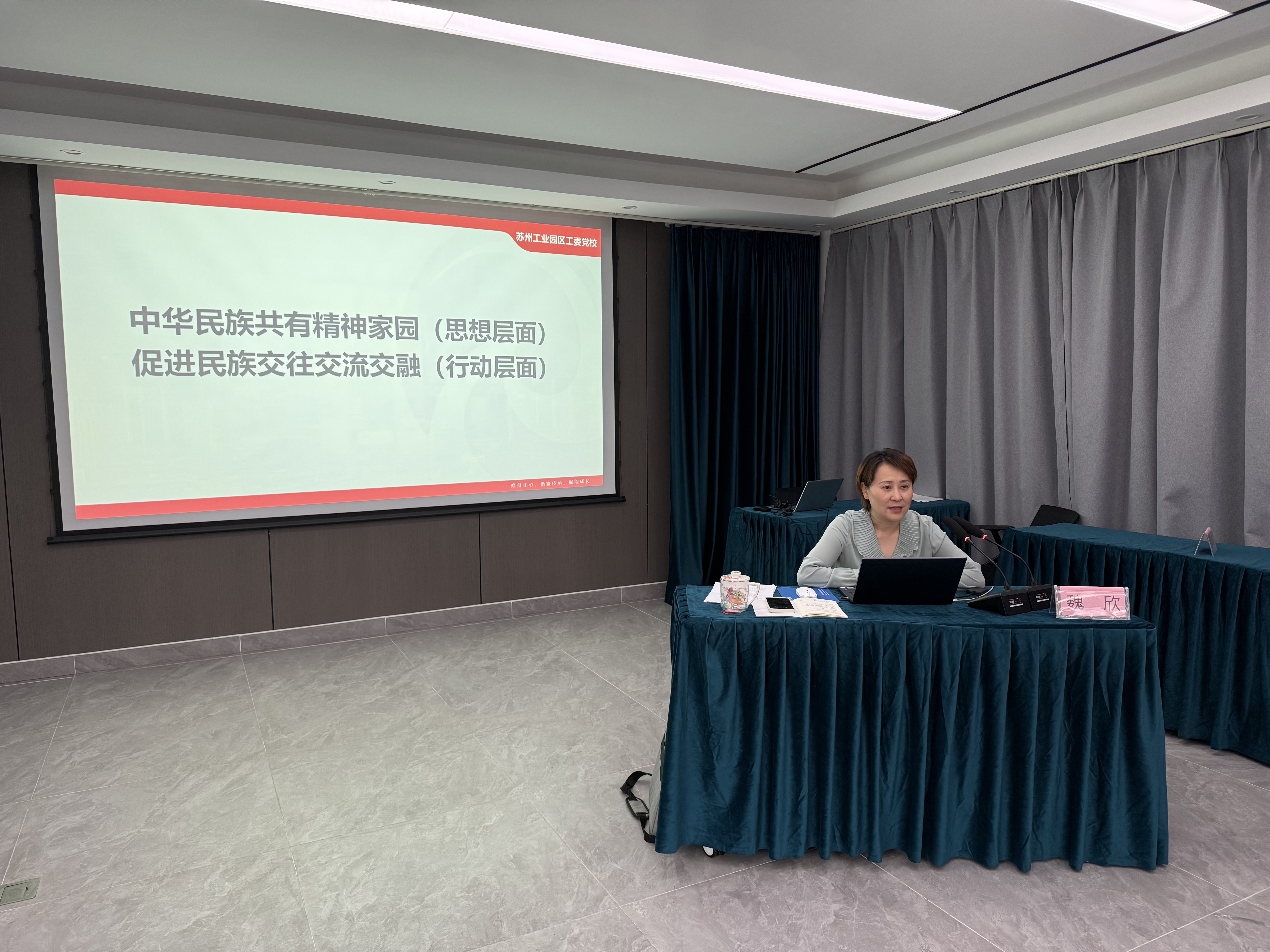 競賽結束后,園區宣傳和統戰部副部長、民宗局局長魏欣圍繞“局長講法治、講安全”進行專題授課,分享民族宗教工作心得體會,并圍繞鑄牢中華民族共同體意識和宗教中國化路徑深入闡釋民族宗教工作的重要意義和重點任務。本次授課理論性強,又具有實踐指導性,為基層深入推進民族工作多元化、民宗法治化提供了有益指導。