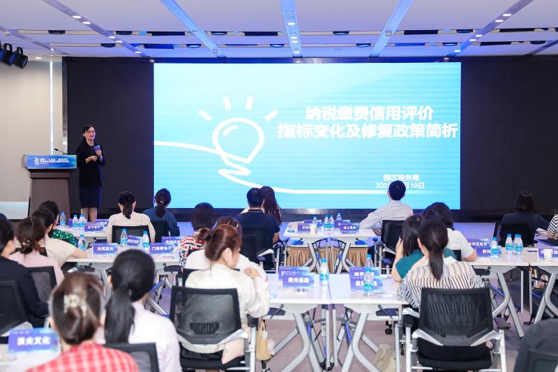 活動伊始,國家稅務總局園區(qū)稅務局納稅服務科負責人就納稅信用最新政策向參會企業(yè)代表進行了解讀。通過梳理分析企業(yè)常見的納稅信用最新政策、稅收改革趨勢等內(nèi)容,幫助企業(yè)健康發(fā)展,進一步優(yōu)化稅收營商環(huán)境。