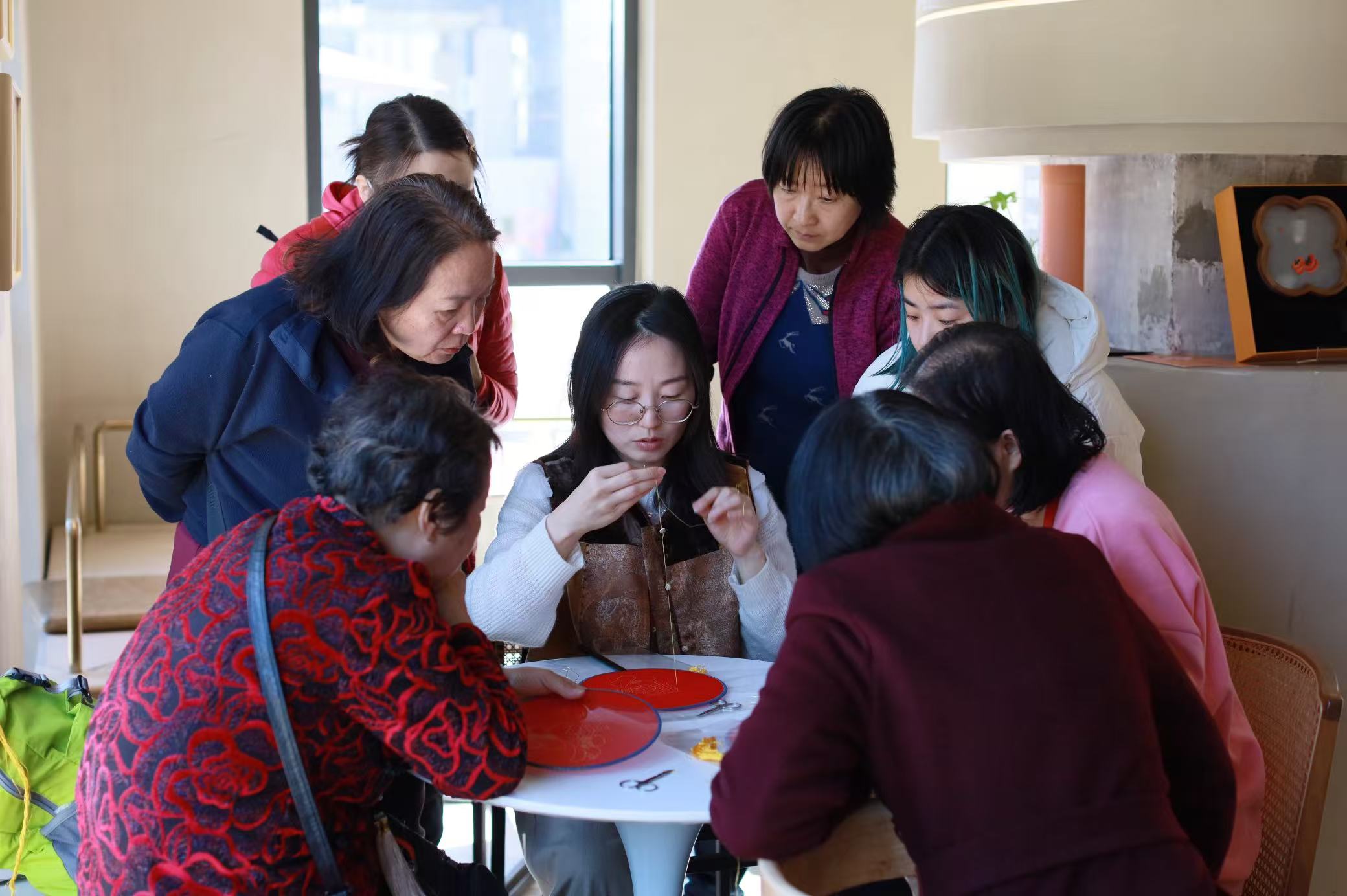 現(xiàn)場,參與者們圍坐一堂,認真了解蘇繡歷史,在專業(yè)老師的指導下,一針一線繡出屬于自己的刺繡作品。不少家長帶著孩子一同參加,感慨道:“平時很少接觸這樣的傳統(tǒng)技藝,今天親手體驗,才真正感受到蘇繡的細膩和匠心,這樣的活動特別有意義。”