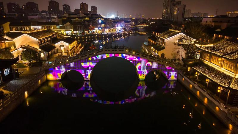 即日起至3月31日,每晚18:00-21:00,斜塘老街新春光影秀準(zhǔn)時(shí)開啟,攬?jiān)聵蚺稀按簡(jiǎn)⑿鲁?,流光織?mèng)”;懷夢(mèng)街內(nèi)“踏步生花,隨行綻焰”,沉浸式感受夢(mèng)幻浪漫的元宵夜景。