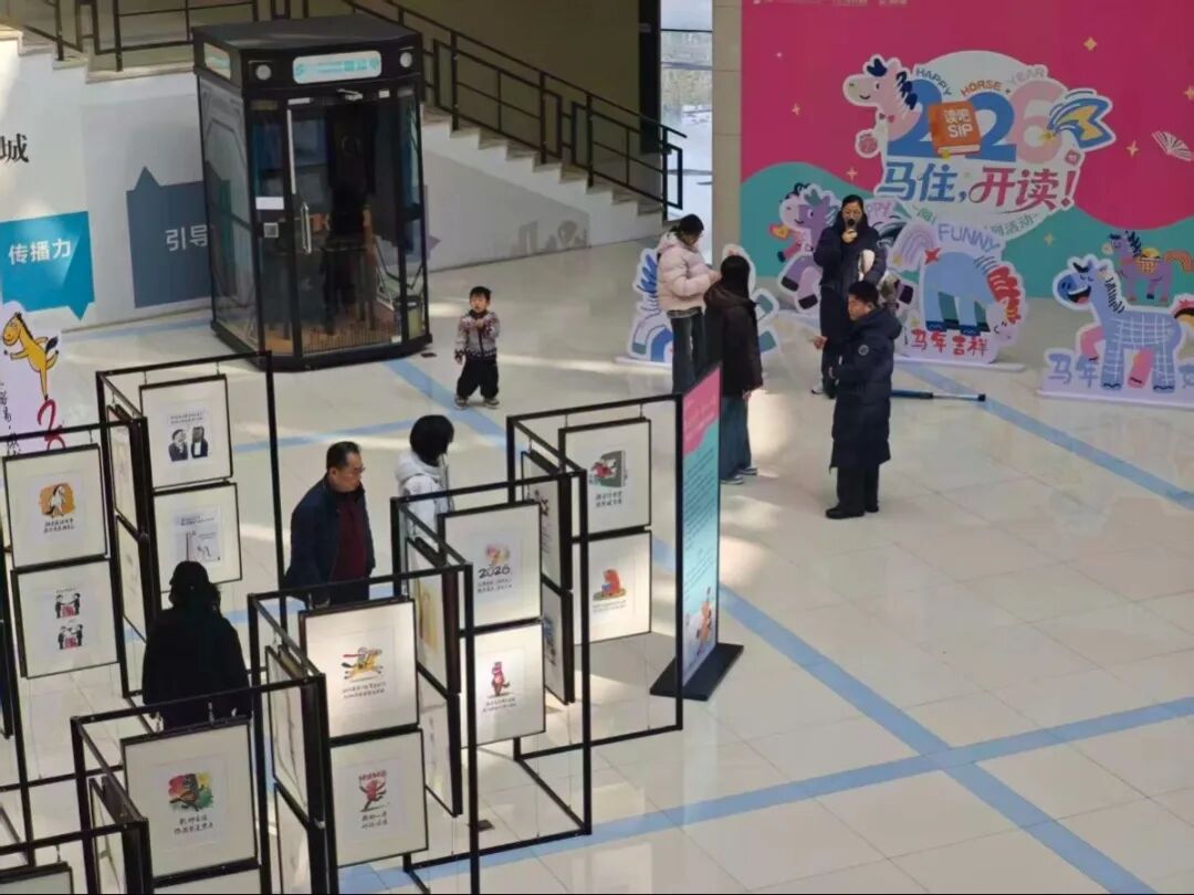 此外,蘇州知名漫畫家阿濤老師還為丙午新春獻(xiàn)上了一份特別賀禮。走進(jìn)圖書館一樓大廳,百幅圍繞生肖“馬”創(chuàng)作的幽默漫畫,或諧音雙關(guān),或妙解成語(yǔ),將生活的智慧融于方寸之間,讓讀者們仿佛踏入了一個(gè)充滿巧思與歡笑的“精神牧場(chǎng)”。