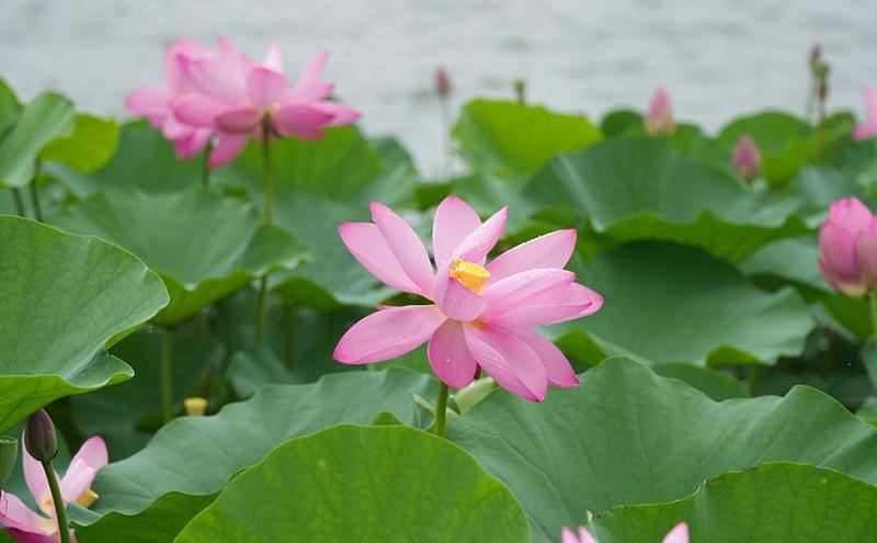 It is a great experience to walk on the JinjiLake Fitness Trail and watch the rain drops falling and rolling on the waterlily leaves. The flowers, pink or white, float on the surface of the lake,rendered quiet by exultant ripples forming one after another near them. It is reminiscentof the “Water Lilies” drawn by Claude Monet.Different from the water lilie... [MORE]
