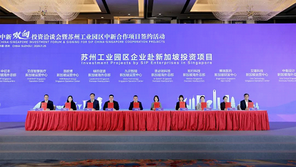 At the China-Singapore Investment Forum & Signing for SIP China-Singapore Cooperation Projects held on Nov 25, 26 projects were signed to promote two-way investment between China and Singapore in biomedicine, professional services, digital economy, green development and other fields. These projects are expected to help accelerate SIP’s development towards an open and innovative world-class high-tech park.
