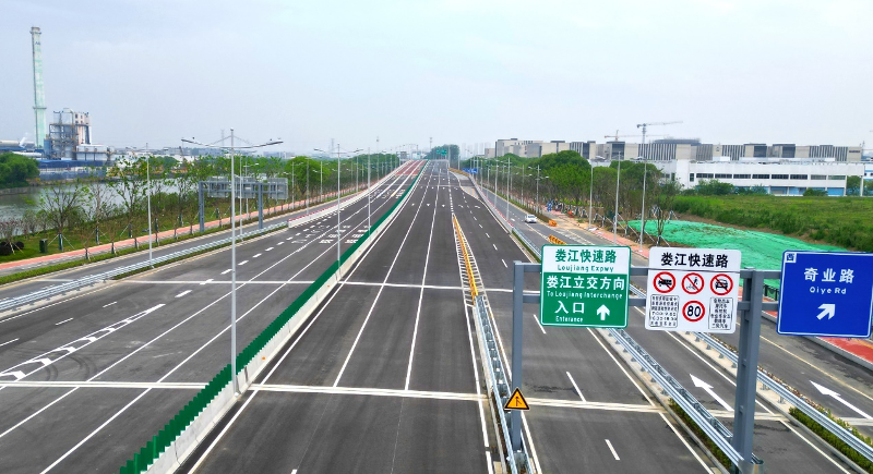 The project stretches from the west side of the overpass bridge of the Shanghai-Nanjing Expressway to the administrative boundary between SIP and Kunshan, with a total length of approximately 3.5 kilometers, including a 1.6-kilometer elevated two-way six-lane section. Its opening marks the completion of the renovation of the whole Loujiang Road.