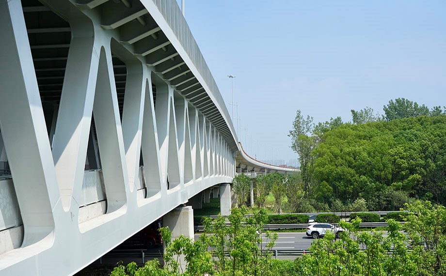 One of the highlights of this project is its double-layer steel truss overpass with an upper two-way six-lane motorway and a lower part for motor vehicles, non-motor vehicles and pedestrians.