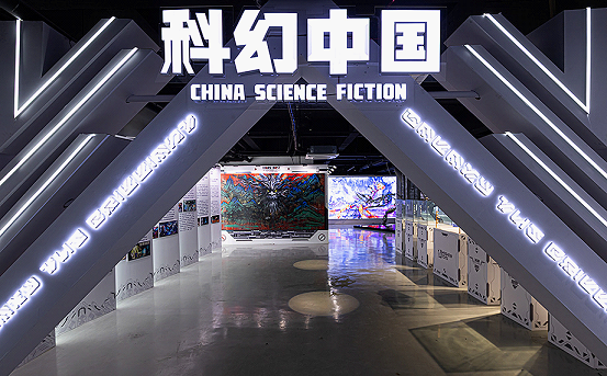 The China Science Fiction exhibition opened concurrently. Jointly designed by Beijing Yuanyu Science Fiction and Future Technology Research Institute and Jujing Tiankong (Beijing) Cultural Creativity Co Ltd, it allows visitors to enjoy an immersive experience of the worlds and life imagined by famous sci-fi writers.