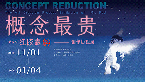 The “Concept Reduction—The Art Creation Process of Mr. Red” exhibition kicked off at Suzhou Eslite Bookstore, SIP on Nov 1, and will last till Jan 4, 2026. The exhibition showcases the artist’s creative journey and works spanning over two decades with rich details.