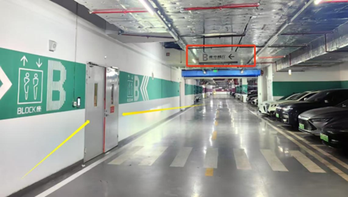 自駕:導(dǎo)航至“揚(yáng)富路10號新建元數(shù)智灣B座”,進(jìn)門右轉(zhuǎn)進(jìn)入地庫,地庫電梯指引如下圖所示: