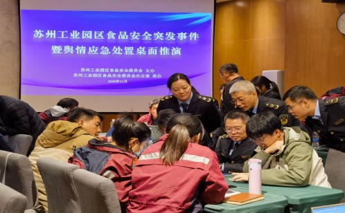 為全面提升食品安全突發(fā)事件協(xié)同應對能力,夯實食品安全保障防線,近日,蘇州工業(yè)園區(qū)組織開展了食品安全突發(fā)事件暨輿情應急處置桌面推演。推演小組以街道為單位,共分為5個小組,每組由2名市場監(jiān)管部門執(zhí)法人員、2名疾控部門流調人員、1名街道工作人員及1名教育局食品安全條線工作人員組成。園區(qū)市場監(jiān)管局、教育局、衛(wèi)健委及各街道食品安全分管領導和相關工作人員現場觀摩。