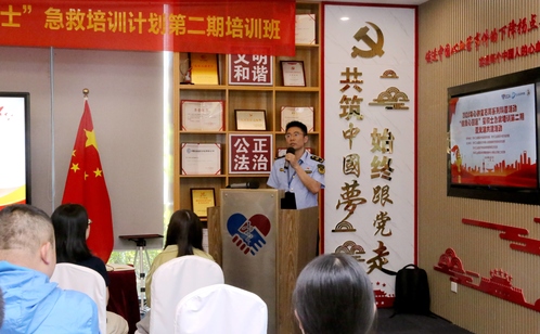 園區(qū)外賣行業(yè)黨委書記江銀弟作開場致辭。他指出,在園區(qū)組織部、兩新工委、市場監(jiān)管局黨委的指導下,外賣行業(yè)黨委聯(lián)合心血管健康研究院聯(lián)合黨支部于2023年推出“星騎士”急救培訓項目,計劃通過3年時間培訓至少60名外賣騎手,希望到場的騎手朋友在為生計奔波的同時,也能不斷學習,積極回饋社會。蘇州工業(yè)園區(qū)東方華夏心血管健康研究院聯(lián)合黨支部書記嚴婷表示,希望通過組織聯(lián)建、隊伍聯(lián)抓、活動聯(lián)辦、發(fā)展聯(lián)促的形式,形成助推新就業(yè)群體健康發(fā)展的有效合力,有效助力健康“心”園區(qū)的建設。