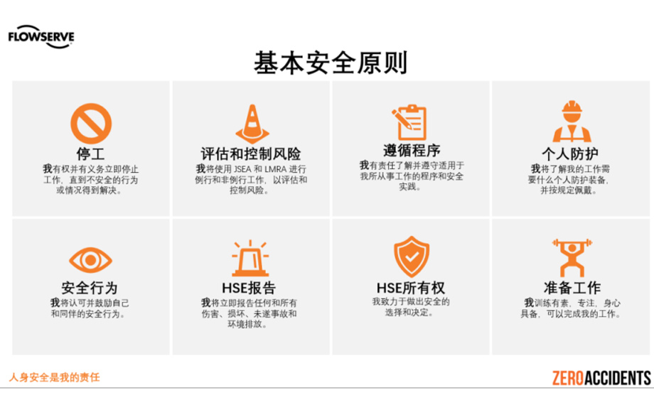 “安全第一”是福斯的六大價值觀之一,秉承著這樣的價值觀,福斯流體深刻認識到安全生產的重要性,將其視為企業生存和發展的生命線。從管理層到一線員工,每個人都牢固樹立起“安全第一”的理念,切實履行福斯流體八項基本安全原則。