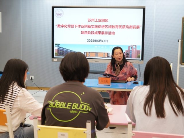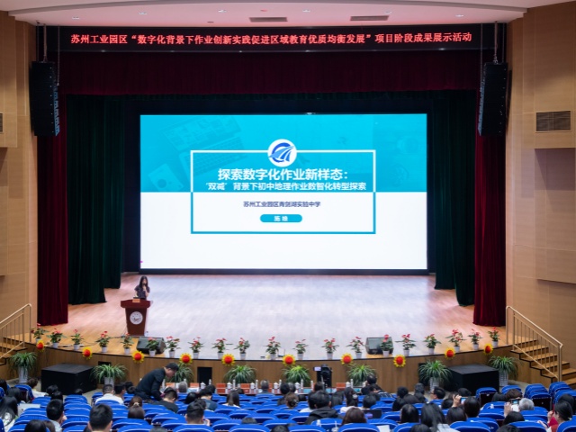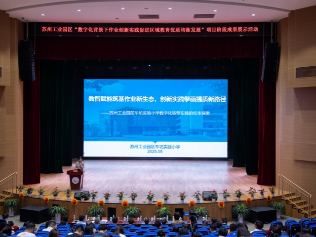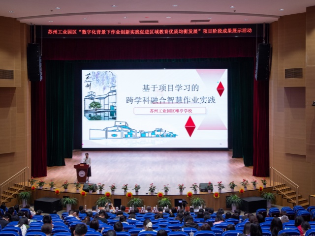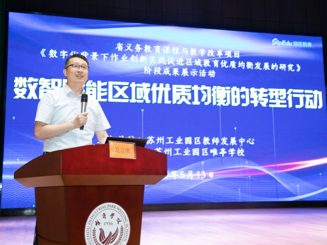 為進一步推進江蘇省義務教育課程與教學改革項目《數(shù)字化背景下作業(yè)創(chuàng)新實踐促進區(qū)域教育優(yōu)質均衡發(fā)展的研究》的實踐與探索,凝練園區(qū)數(shù)字化賦能教育教學改革的新經驗,促進區(qū)域教育優(yōu)質均衡發(fā)展。5月13日下午,“數(shù)字化背景下作業(yè)創(chuàng)新實踐促進區(qū)域教育優(yōu)質均衡發(fā)展”項目階段成果展示活動在蘇州工業(yè)園區(qū)唯亭學校順利開展。園區(qū)教師發(fā)展中心主任葉鵬松,副主任許鳳、胡修喜、戴小駒等相關領導出席了本次活動,同時還有部分學科教研員以及來自全區(qū)義務教育階段學校的教學分管校長、教導主任、學科骨干教師等參與學習和交流。活動通過課堂教學展示、項目校經驗分享、項目組工作匯報等多種形式,全方位呈現(xiàn)數(shù)字化背景下作業(yè)創(chuàng)新實踐的階段性碩果,為構建更具活力的教育生態(tài)注入強勁動能。