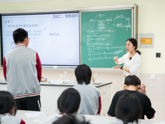星灣學校化學骨干教師邰偉偉對牟老師的課程進行高度評價。牟老師以“鹵水點漿 凝結成花”為題,利用易加平臺數(shù)字化賦能課堂,引導學生鑒別鹵水和實驗室制備鹵水,師生共同探討工業(yè)富集鹵水原料氯化鎂,最后學生動手制作豆花,深刻感受古法制豆花的魅力,感受新型創(chuàng)新作業(yè)形式。